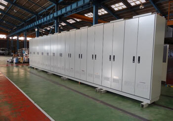 制御盤の設計製作、制御システムの構築。設計から部品調達、組立て、機側配線、検査、品質管理、現地試運転立ち上げまでの一貫対応します。