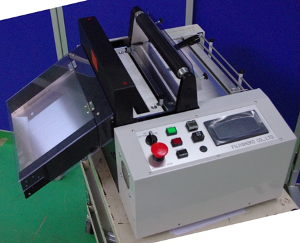 電極・フィルム・不織布・紙類・チューブなどを定寸でカットしていきます。
