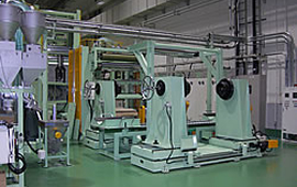 押出フィルム成形機、押出チューブ・パイプ成形機を樹脂の供給、押出成形部から巻取り、切断まで一貫した製造ラインを提案、設計、製造いたします。