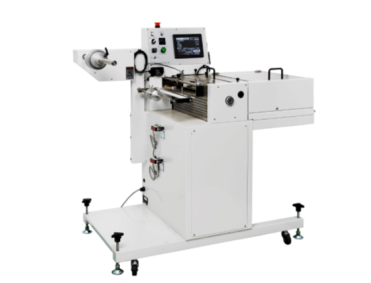 電極・フィルム・不織布・紙類・チューブなどを定寸でカットしていきます。